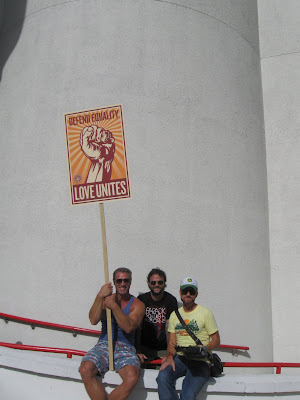 Miami Beach was all sunshine and love today, as we joined in the nationwide call to Join the Impact. It felt so good to get out, and let the country know that we will not go down quietly. I am so excited by the number of young people and straight people that showed up and the passion that is in their hearts. We really are going to win this thing in the long run. Oh, and one person showed up to protest the protest, and as you can see in the photo, he is totally insane.